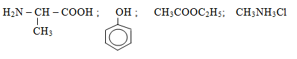 Cho dãy các chất: H2NCH(CH3)COOH, C6H5OH (phenol), CH3COOC2H5, C2H5OH, CH3NH3Cl. Số chất trong dãy phản