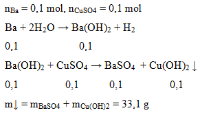 Hòa tan 13,7 gam kim loại Ba vào 100ml dung dịch CuSO4 1M thu được m gam kết tủa. Giá trị m là: