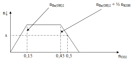 Cho CO2 từ từ vào dung dịch hỗn hợp gồm Ca(OH)2 và KOH , ta có kết quả thí nghiệm được biểu