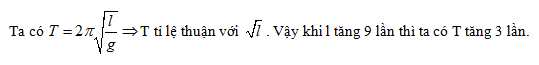 Khi tăng chiều dài của con lắc đơn lên 9 lần thì chu kỳ dao động điều hòa của nó thay đổi