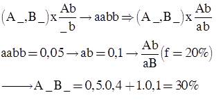 Một loài thực vật, tính trạng thân cao là trội hoàn toàn so với thân thấp; tính trạng hoa đỏ là trội hoàn toàn so với hoa trắng. Các cặp gen quy định các tính trạng này cùng nằm trên một cặp nhiễm sắc thể thường. Trong một phep lai (P) giữa cây thân cao. hoa đỏ với cây thân cao, hoa trắng, ở F1 thu được 5% cây thân thấp, hoa trắng. Tỉ lệ cây thân cao, hoa đỏ ở F1 là bao nhiêu?