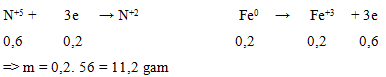 Cho m gam Fe phản ứng hoàn toàn với dung dịch HNO3 loãng (dư), thu được 4,48 lít khí NO (đktc, sản phẩm khử duy nhất). Giá trị của m là ?