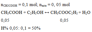 Đun 6,0 gam CH3COOH với C2H5OH dư (xúc tác H2SO4 đặc) thu được 4,4 gam CH3COOC2H5. Hiệu suất của phản ứng este hóa là ?