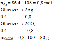 Cho m gam glucozo tác dụng với lượng dư dung dịch AgNO3/NH3 thu được 86,4 gam Ag. Nếu lên men hoàn toàn m gam glucozo rồi cho khí CO2 thu được hấp thụ vào nước vôi trong dư thì lượng kết tủa thu được là ?
