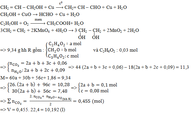 Hỗn hợp R gồm X, Y, Z, T trong đó T chiếm 19,62% khối lượng hỗn hợp R. Đốt cháy 9,34 gam hỗn hợp R cần V lít O2 (đktc) thu được hỗn hợp CO2 và H2O trong đó khối lượng CO2 nhiều hơn khối lượng H2O là 11,3 gam. Giá trị của V là ?