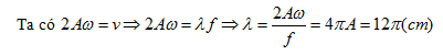 Một sóng cơ có biên độ 3cm, tốc độ truyền sóng bằng 2 lần vận tốc dao động cực đại của phần tử môi trường. Bước sóng là: