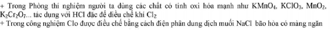 Trong phòng thí nghiệm ngưởi ta điều chế khí clo bằng cách