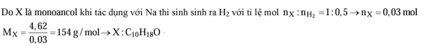 Trong tinh dầu cây kinh giới có chứa mono ancol X mạch hở, được dùng trong nấu ăn và công nghiệp thực phẩm. Biết 4,62g X phản ứng với Na dư tạo ra 0,015 mol H2. Công thức phân tử của X là: