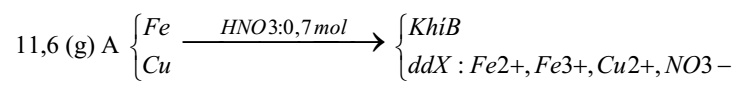 Hòa tan hoàn toàn 11,6g hh Fe và Cu vào 87,5g dd HNO3, sau khi kim loại tan hết thu được dd X (không có