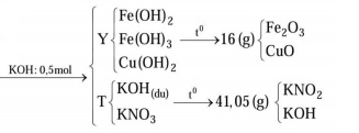 Hòa tan hoàn toàn 11,6g hh Fe và Cu vào 87,5g dd HNO3, sau khi kim loại tan hết thu được dd X (không có anion NH4+) và V lít hh khí B (gồm 2 chất khí có tỉ lệ mol là 2:3). Cho 500ml dd KOH 1M vào dd X thu được kết tủa Y và dd Z. Lọc lấy Y rồi nung trong không khí đến khối lượng không đổi thu được 41,05gam chất rắn. Biết các phản ứng xảy ra hoàn toàn. Nồng độ phần trăm của Fe(NO3)3 trong X là: