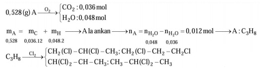 Đốt cháy hoàn toàn 0,528 gam hợp chất hữu cơ chỉ thu được 1,584 gam CO2 và 0,864 gam nước. Cho X tác dụng với Cl2 thu được hh sản phẩm, trong đó có chất hữu cơ Y (MY = 2,5682 MX). Số đồng phân cấu tạo của Y là: