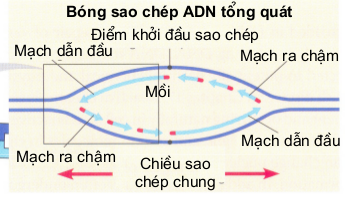 (5) Sau nhân đôi tạo ra 2 ADN, một ADN có mạch mới gồm các đoạn okazaki nối với nhau, ADN khác có mạch mới là một mạch liên tục.