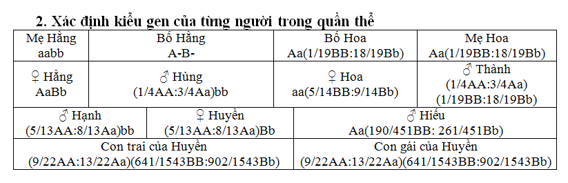 (4) Nếu Hạnh lấy vợ có lông mi thẳng, mũi cao thì có thể sinh ra con trai lông mi cong, mũi cao với xác suất là 36,44%.