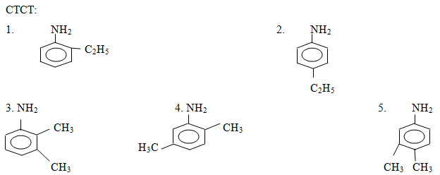 Amin bậc một X chứa vòng benzen và có công thức phân tử C8H11N. Nếu cho X tác dụng với nước brom thì thu được chất kết tủa có công thức C8H10NBr3. Số công thức cấu tạo của X là:
