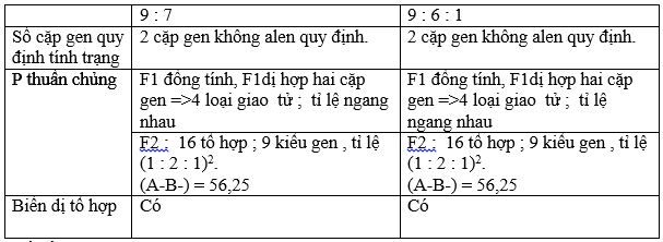 Khi xét sự di truyền của một tính trạng, đời F2 phân li kiểu hình với tỉ lệ 9 : 7 hoặc 9 : 6