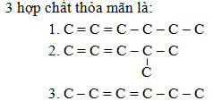 X mạch hở có CTPT C6H10 tác dụng với HBr cho 3 sản phẩm monobrom là đồng phân cấu tạo của nhau. Số đồng phân cấu tạo thỏa mãn X là