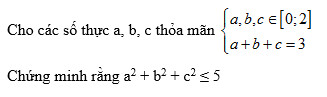 Suy ra a2 + b2 + c2 = (a + b + c)2 – 2(ab + bc + ca) = 9 – 2(ab + bc + ca) ≤ 5