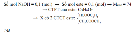 Xà phòng hóa hoàn toàn 7,4 gam một este no, đơn chức, mạch hở X cần dùng vừa đủ 100ml dung dịch NaOH 1M. Số công thức cấu tạo của X là