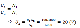 Một máy biến áp có số vòng của cuộn sơ cấp là 5000 và thứ cấp là 1000. Bỏ qua mọi hao phí của máy biến thế. Đặt vào hai đầu cuộn sơ cấp điện áp xoay chiều có giá trị hiệu dụng 100 V thì điện áp hiệu dụng ở hai đầu cuộn thứ cấp khi để hở có giá trị là