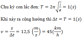 Một tàu lửa đang chuyển động thẳng đều trên đường ray, mỗi thanh ray dài 12,5m, giữa hai thanh ray luôn có một khoảng hở nhất định để thanh ray giãn nở. Một học sinh đang ngồi trên ghế tại vị trí phía trên một bánh xe của toa tàu. Để xác định tốc độ của tàu, học sinh này đã treo một con lắc đơn vào trần toa tàu và cho con lắc dao động điều hòa. Khi quan sát dao động của con lắc, học sinh này nhận thấy khi dây treo có chiều dài 25cm thì cứ mỗi lần tàu vừa đi hết chiều dài mỗi thanh ray, con lắc dao động mạnh nhất. Lấy g = 2π = 10 m/s2. Học sinh này đã xác định được tốc độ của tàu là