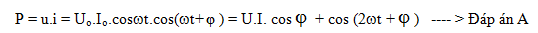 Cho dòng điện xoay chiều có tần số là 50 Hz chạy qua một đoạn mạch chỉ có điện trở thuần. Công suất tức thời trong mạch biến thiên