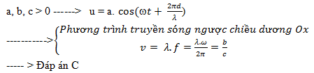 Một sóng cơ truyền trên sợi dây dọc theo trục Ox, các phần tử trên dây dao động theo phương Ou với phương trình u(x,t) = acos(b.t + c.x), với a, b, c có giá trị dương. Sóng truyền
