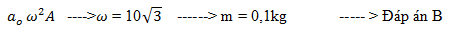 Một con lắc lò xo dao động điều hòa với biên độ A = 3 cm và có gia tốc cực đại 9 m/s2. Biết lò xo của con lắc có độ cứng k = 30 N/m. Khối lượng của vật nặng là