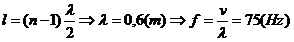 Trên một sợi dây dài 1,5m, có sóng dừng được tạo ra, ngoài 2 đầu dây người ta thấy trên dây còn có 4 điểm không dao động. Biết tốc độ truyền sóng trên sợi dây là 45m/s. Tần số sóng bằng
