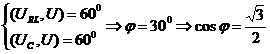 Một đoạn mạch nối tiếp gồm một cuộn dây và một tụ điện. Hiệu điện thế hiệu dụng hai đầu đoạn mạch, hai đầu cuộn dây, hai đầu tụ điện đều bằng nhau. Hệ số công suất cos của mạch bằng