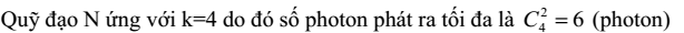 Xét nguyên tử hiđrô nhận năng lượng kích thích, electron chuyển lên quỹ đạo N, khi electron trở về các quỹ đạo bên trong sẽ phát ra tối đa