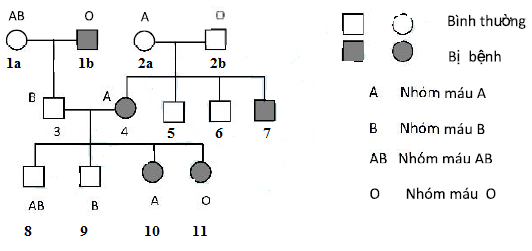 Bệnh Z là một bệnh di truyền hiếm gặp do gen lặn (z) nằm trên NST số 9 quy định, gen này cùng nhóm liên kết với gen quy định nhóm máu và cách 20 cM. Quan sát sơ đồ phả hệ sau và cho biết trong số các nhận định dưới đây có bao nhiêu nhận định đúng?