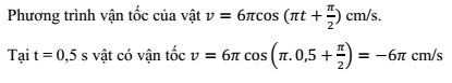 Một vật dao động điều hòa theo phương trình x = 6 cos(t)cm. Tại thời điểm t = 0,5s, vận tốc