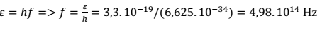 Năng ℓượng photôn của một bức xạ ℓà 3,3.10-19J. Tần số của bức xạ này bằng