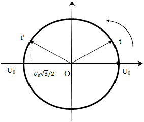 Mạch dao động lí tưởng gồm cuộn dây thuần cảm có độ tự cảm L = 5.10-5(H) và tụ điện có điện dung C = 5pF. Ban đầu cho dòng điện cường độ I0 chạy qua cuộn dây, ngắt mạch để dòng điện trong cuộn dây tích điện cho tụ, trong mạch có dao động điện từ tự do chu kì T. Điện áp cực đại trên tụ là U0. Ở thời điểm t, cường độ dòng điện qua cuộn dây là i = - 0,5I0 và đang giảm thì đến thời điểm t’ = t + T/3 điện áp trên tụ sẽ là: