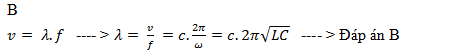 Công thức nào sau đây dùng để tính bước sóng theo các thông số L, C của mạch chọn sóng máy