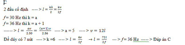 Cho sợi dây có một đầu cố định, một đầu gắn với một nguồn tạo sóng trên trên dây có tần số thay đổi được. Tần số 30Hz và 36 Hz là hai giá trị gần nhau nhất tạo sóng dừng trên dây. Để trên dây có 7 nút sóng (kể cả hai đầu) thì tần số phải là;.