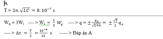 Thời gian ngắn nhất từ lúc tụ bắt đầu phóng điện đến lúc năng lượng điện trường bằng ba lần năng lượng từ trường là