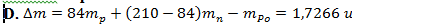 là 209,9828u; của nơtron là 1,0087u; của prôtôn là 1,0073u. Độ hụt khối của hạt nhân
