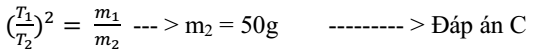 Một con lắc lò xo gồm vật có khối lượng m và lò xo có độ cứng k không đổi, dao động điều hoà. Nếu khối lượng m = 200 g thì chu kì dao động của con lắc là 2 s. Để chu kì con lắc là 1 s thì khối lượng m bằng: