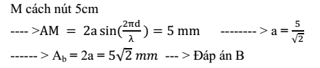Sóng dừng trên một sợi dây có dạng: u =asinbx.cos t (mm).Trong đó x đo bằng (cm) , t đo bằng (s), cho bước sóng bằng 0,4m, biên độ dao động của một phần tử cách một nút sóng một đoạn 5cm có giá trị bằng 5mm. Biên độ A của bụng sóng bằng: