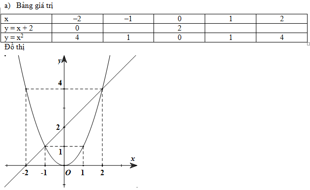 Cho đường thẳng (d) có phương trình y = x + 2 và parabol (P) có phương trình y = x2. a) Vẽ đường
