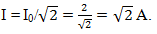 Cường độ dòng điện chạy qua một đoạn mạch có biểu thức i = 2cos100πt (A). Cường độ hiệu dụng của dòng điện này là