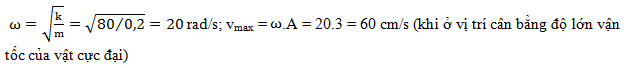 Con lắc lò xo gồm vật nhỏ có khối lượng 200 g và lò xo nhẹ có độ cứng 80 N/m. Con lắc dao động điều hòa theo phương ngang với biên độ 3 cm. Độ lớn vận tốc của vật ở vị trí cân bằng là