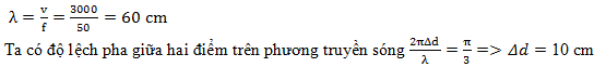 Một sóng cơ có tần số 50 Hz truyền theo phương Ox có tốc độ 30 m/s. Khoảng cách giữa hai điểm gần nhau nhất trên phương Ox mà dao động của các phần tử môi trường tại đó lệch pha nhau π/3 bằng