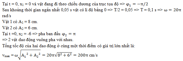 Tổng tốc độ của hai dao động ở cùng một thời điểm có giá trị lớn nhất là