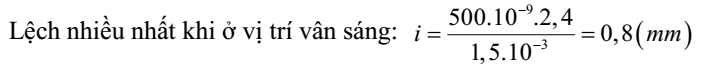 Trong thí nghiệm giao thoa Y-âng, nguồn S phát bức xạ có bước sóng , khoảng cách giữa hai khe , màn quan sát E cách mặt phẳng hai khe . Dịch chuyển một mối hàn của cặp nhiệt điện trên màn E theo đường vuông góc với hai khe, thì cứ sau một khoảng bằng bao nhiêu kim điện kế lại lệch nhiều nhất?