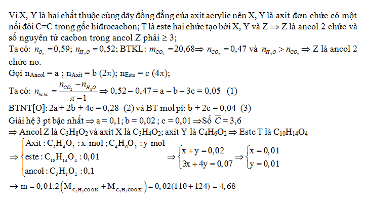 Cho X, Y là hai chất thuộc dãy đồng đẳng của axit acrylic và MX < MY; Z là ancol có cùng số