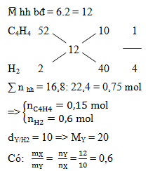 Hỗn hợp X có thể tích 16,8 lit (đktc) vinylaxetilen và H2, tỉ khối của X đối với H2 bằng 6 .
