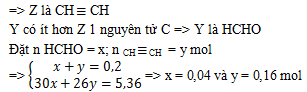 Hỗn hợp X gồm anđehit Y và ankin Z (Z nhiều hơn Y một nguyên tử cacbon). Biết 4,48 lít hỗn hợp X