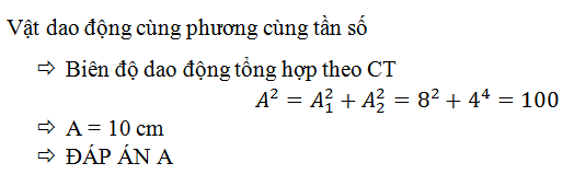 Một vật thực hiện đồng thời hai dao động điều hòa cùng phương, cùng tần số, có biên độ lần lượt là 8cm và 4 cm. Biên độ dao động tổng hợp có thể nhận giá trị bằng